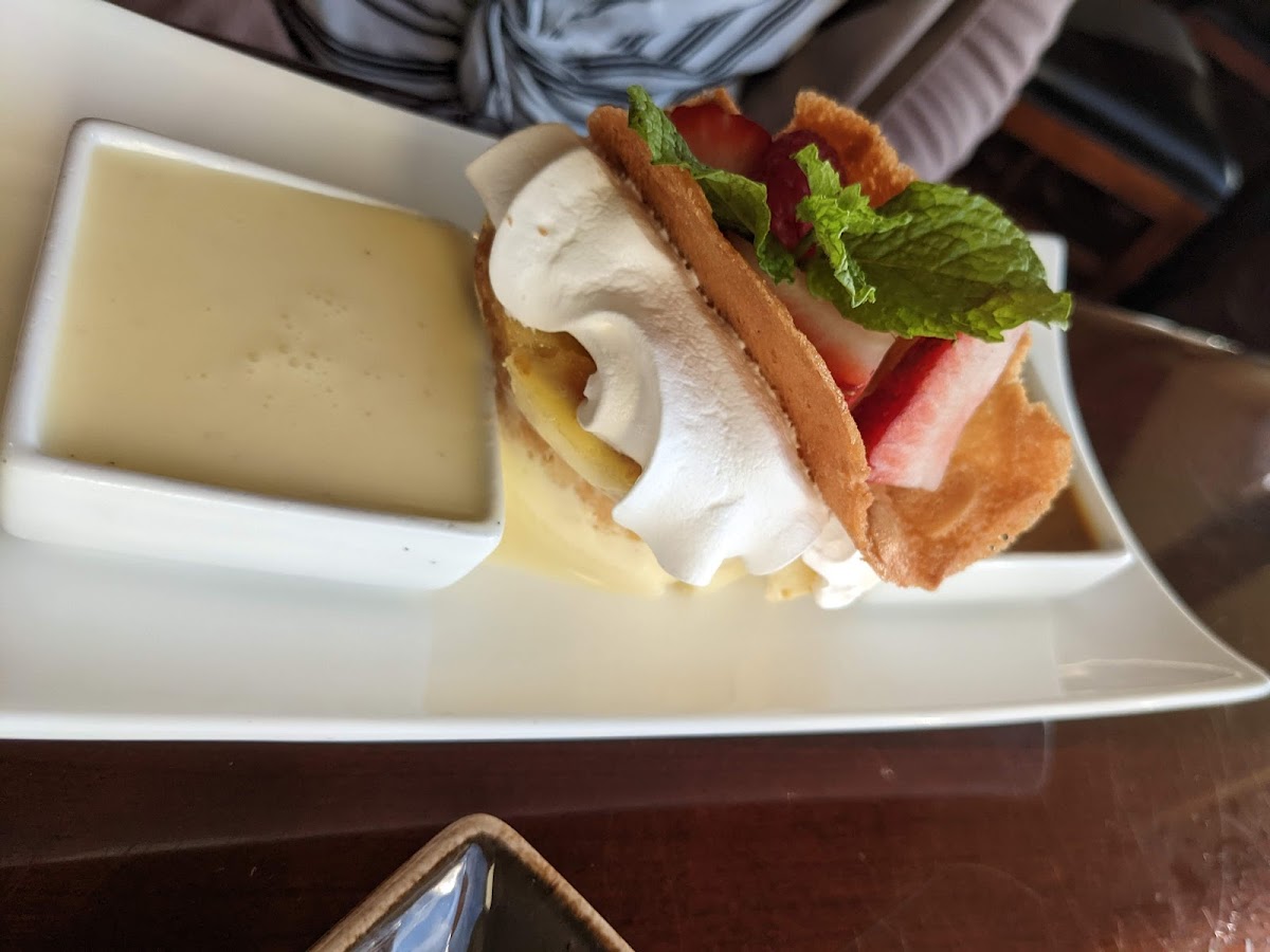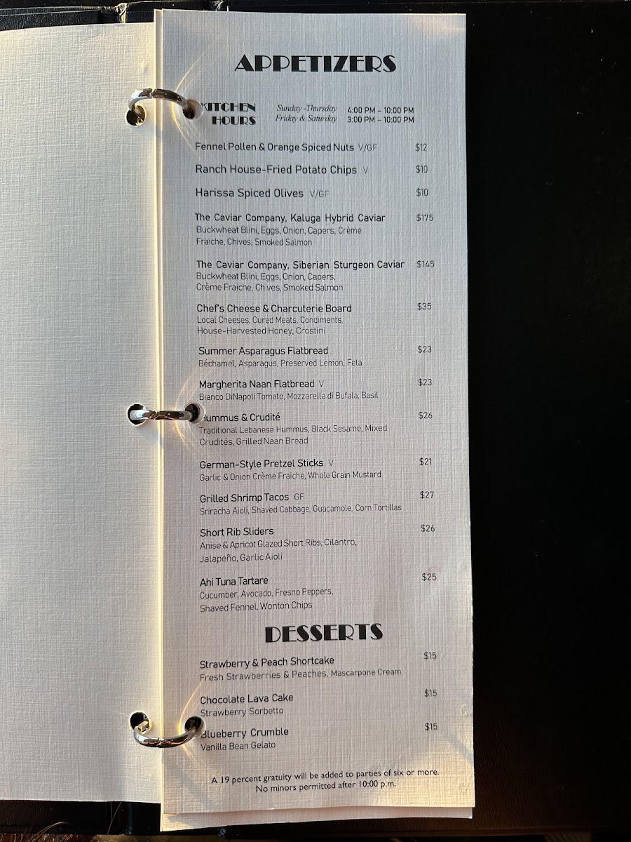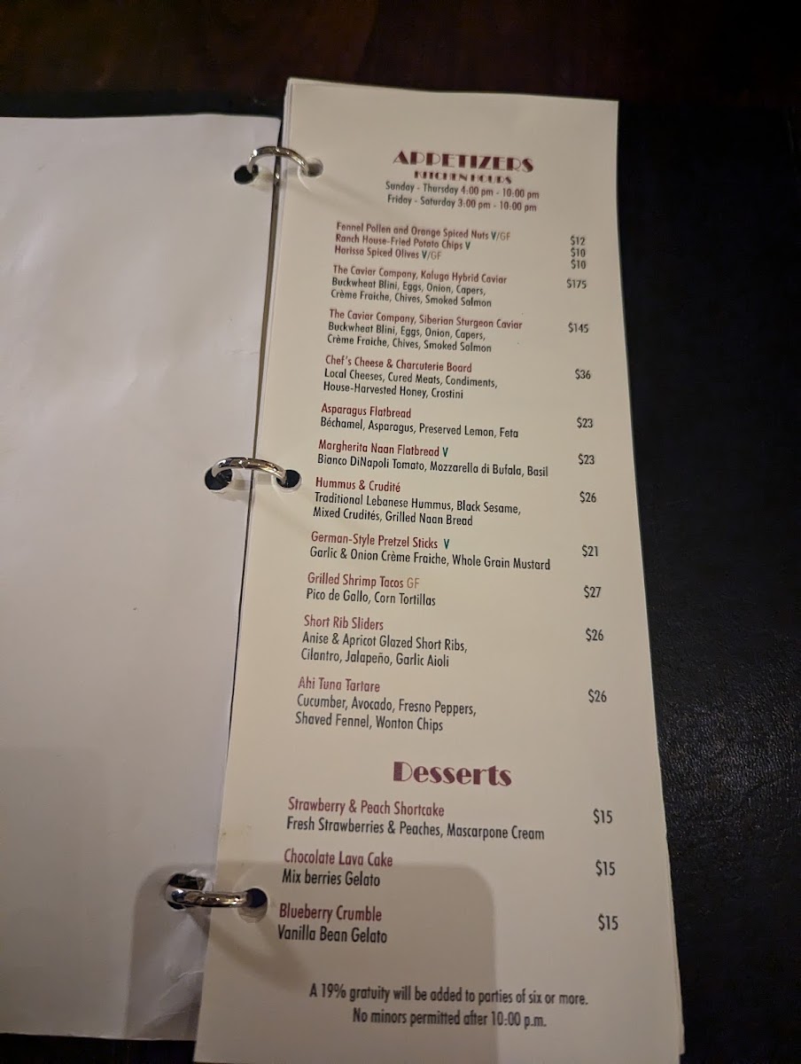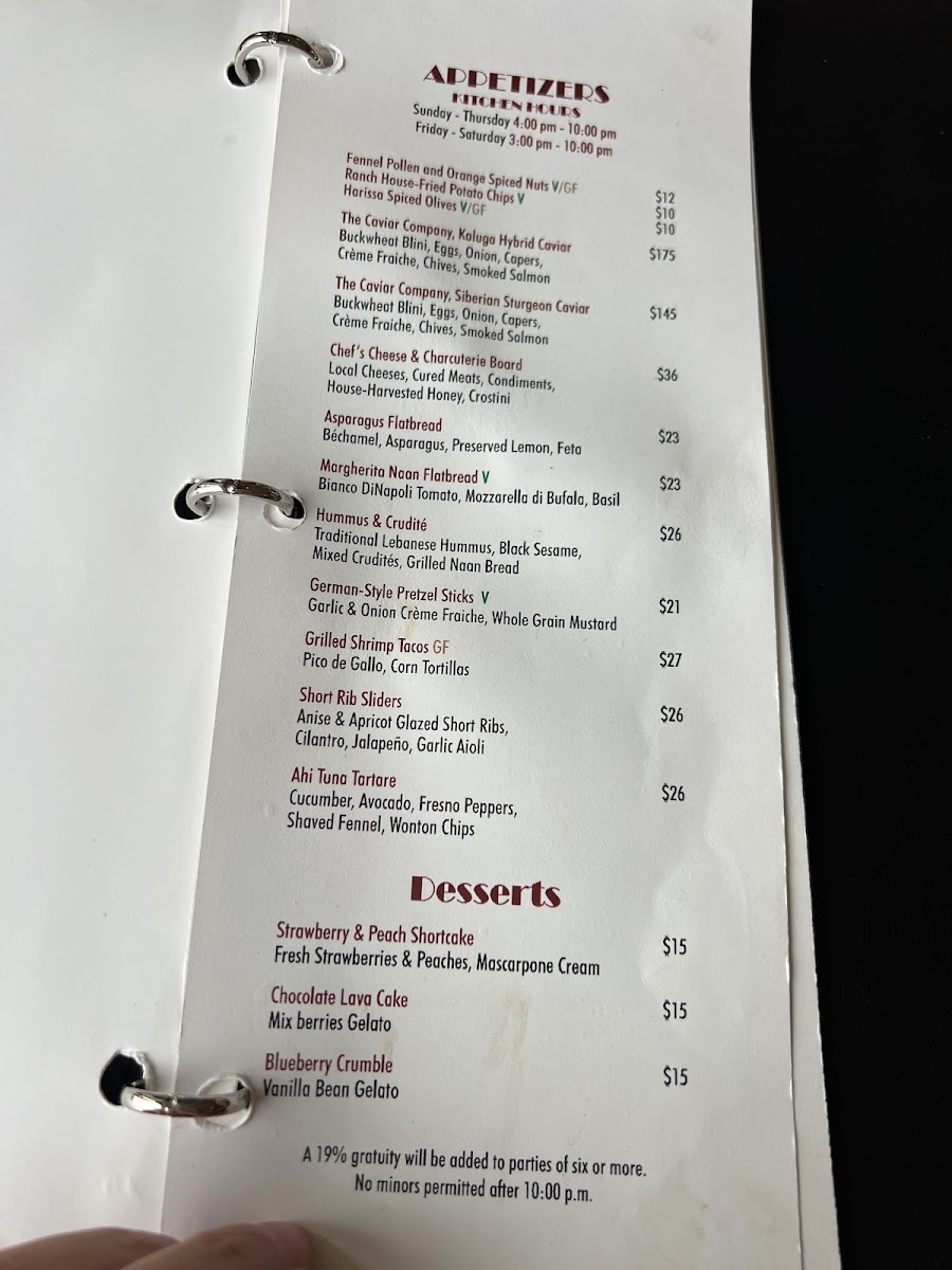 Top of the Mark’s menu caters to a variety of tastes, featuring sumptuous appetizers and a well-curated selection of spirits and wines. Indulge in the delightful dessert offerings such as the Apple Tarte Tatin served with creamy vanilla bean gelato, or the decadent Chocolate Lava Cake paired with bright berry gelato—both for just $15. The charcuterie board, ample and flavorful, is a favorite among guests, making it an ideal shareable to accompany your drinks.